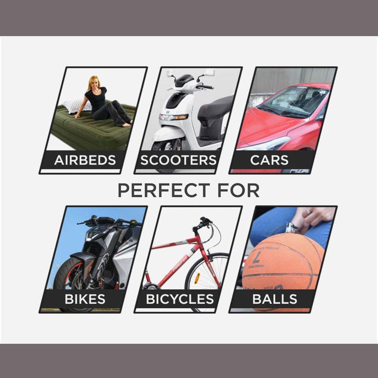 Provided with various attachments, Airzox™ 2.0 works on cars, motorcycles, scooters, bicycles, air mattresses, inflatable toys, basketballs, soccer balls, and much more. The possibilities are endless.